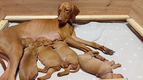 HD frei, ED frei, Augen Genostopie frei, vollzahnig, semmelgelbes Haarkleid, Trägerin des Kurzhaargens, Jagdliche Prüfungen: VJP, HZP, Brauchbarkeit, Alma besitzt eine Zuchttauglichkeit und stammt direkt aus Ungarn, gewölft am 07.02.2022