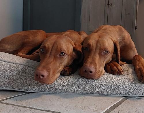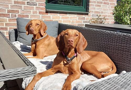 Csövarberki Pizsi, genannt Alma,ist eine sehr ruhige und ausgeglichene Hündin, sie ist sehr kinderlieb, und einfach ein toller Familienhund, sie arbeitet gerne im Wasser und Feld, Alma apportiert sehr gerne und bringt alles was man ihr gibt.